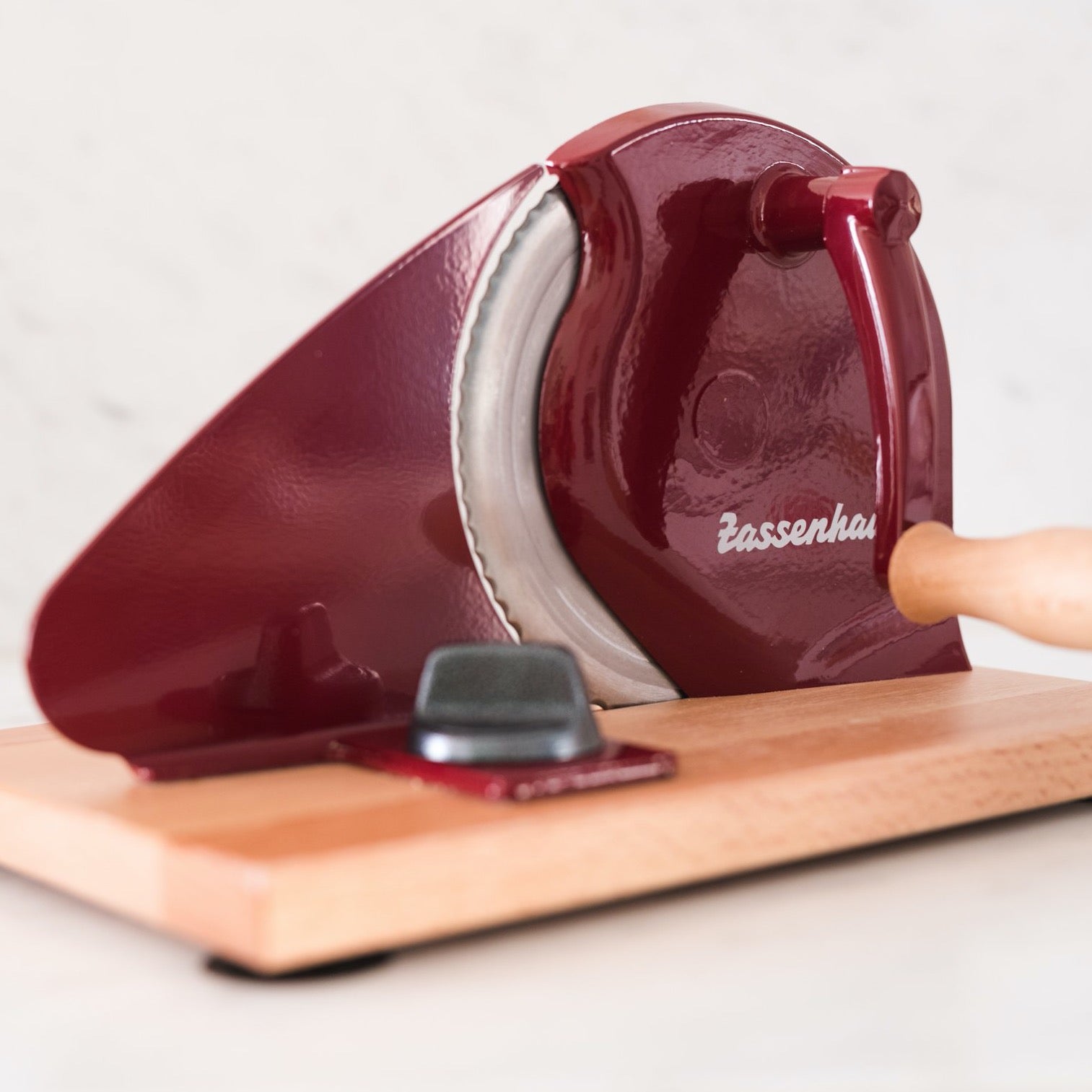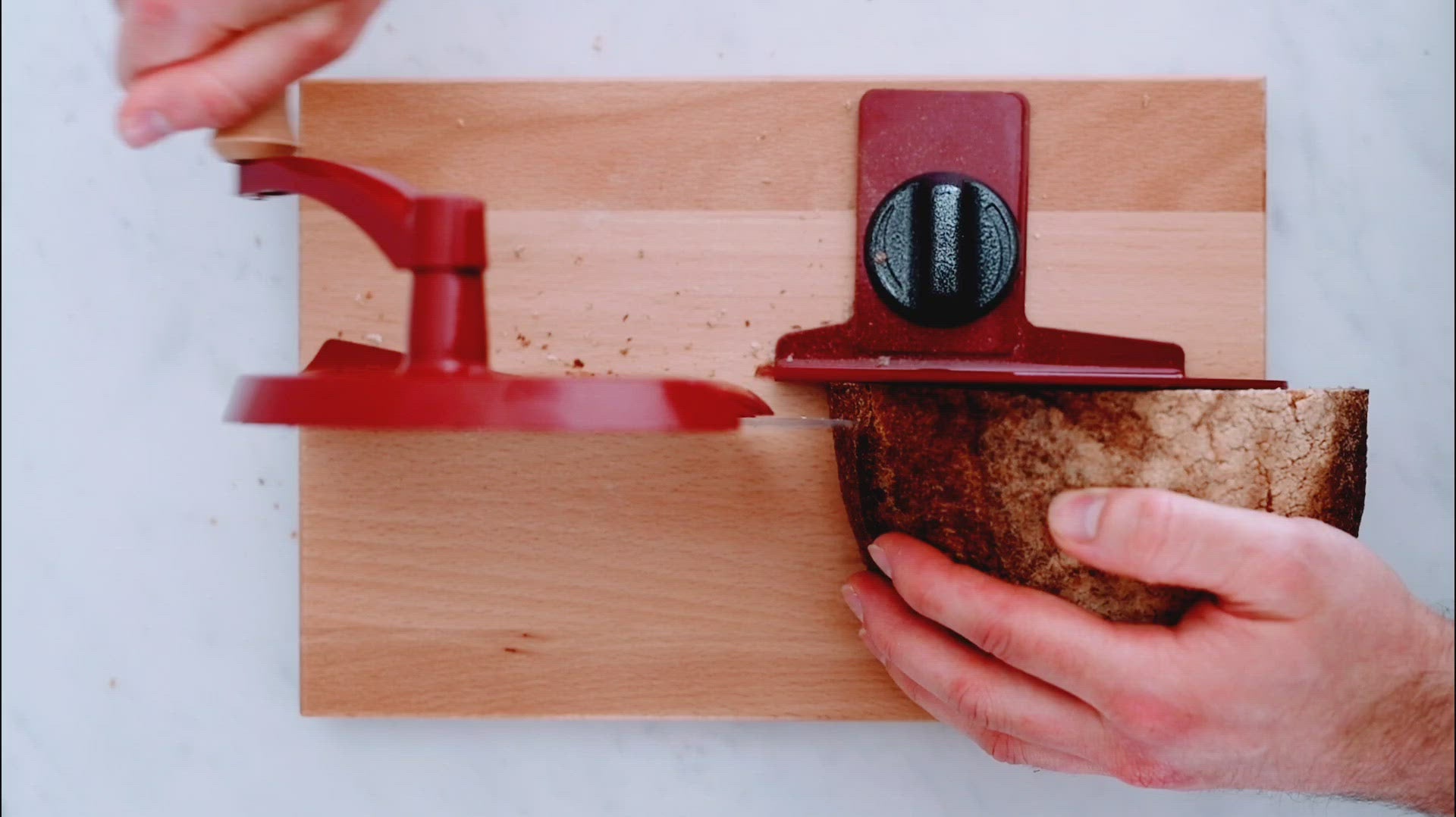 Handmatige retro broodsnijmachine van het merk Zassenhaus voor het makkelijk snijden van jouw vers zuurdesembrood.